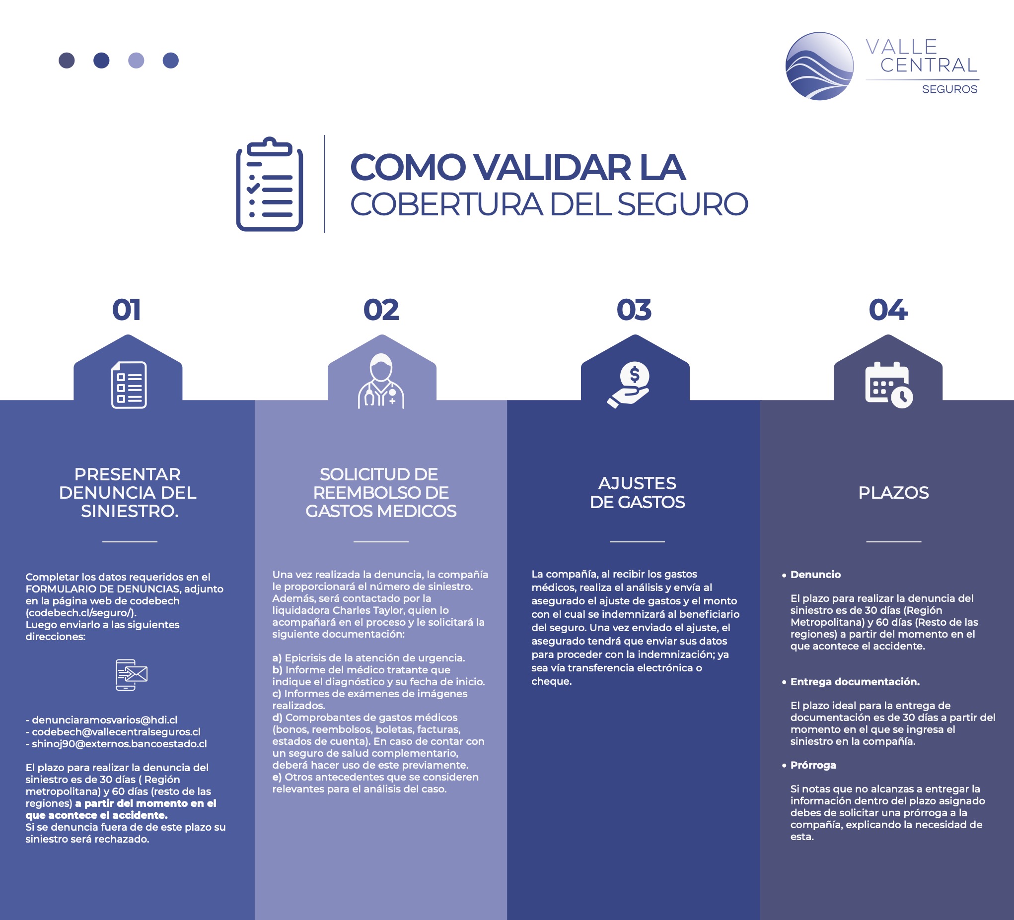 Recuerda, luego de completarlos, debes enviarlos a: denunciaramosvarios@hdi.cl , codebech@vallecentralseguros.cl , shinoj90@externos.bancoestado.cl